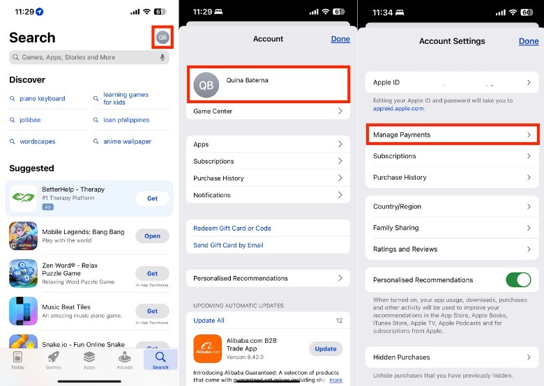 Tap Manage Payments.