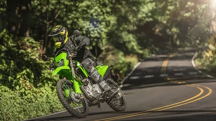 The Kawasaki KLX 300 is a bike easy to learn on thanks in part to its 292cc engine. Despite the smaller engine, it still packs a decent punch that tops out at nearly 90 mph, but it's more comfortable to ride in the 60s. That makes it a tough ride on interstates when it comes to passing, but it could still be serviceable. If you plan on taking it into the city, Kawasaki boasts a radiator fan that directs heat away from the rider for more comfort. Where it shines best is in off-roading thanks to its low curb weight of 302 lbs and adjustable suspensions.