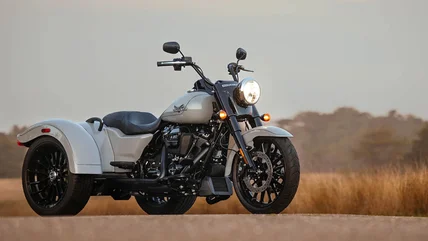 Harley's current motorcycle offerings aren't limited to two-wheeled models, though. The 2024 lineup includes three trikes: the Road Glide 3, the Tri Glide Ultra, and the Freewheeler. The Freewheeler is the most affordable, with a base price of $31,999, and it comes in three color schemes: billiard gray, vivid black, and Alpine green. It includes a security system and cruise control as standard equipment.