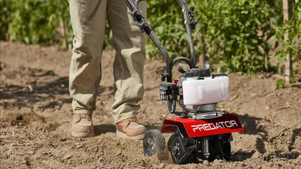 For dads and homeowners who have dreams of a bountiful garden, the Predator 2-Stroke Gas Cultivator from Harbor Freight could be a solid buy. It features a robust 43cc engine, providing enough power for small residential gardens, and a tiller that can adjust between 2–6 inches of depth and 4–9 inches of width. The hardened steel tiller blades are capable of turning various types of soil, including tough clay and dry, rocky dirt, while a set of 8-inch wheels allows you to move the tool easily around your garden and garage. It weighs roughly 32 pounds, making it relatively lightweight, and handlebar controls allow users to operate the device with ease. The tiller costs $219.99 and features hundreds of reviews praising its size-to-power ratio, durability, and value.