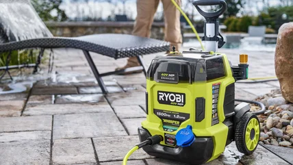 Typically, the stream from a pressure water is fairly narrow, and it can be a chore using it when covering large surfaces, such as a sidewalk, patio, or driveway. That's where Ryobi's 15-inch 3,400 PSI Gas Pressure Washer Surface Cleaner comes in very handy. By channeling the pressurized water through the head of a spinning arm attached to a wheeled, Roomba-shaped disk, you can easily push the surface cleaner around and clean in areas in wide paths. Ryobi says this is up to five times faster than using a pressure washer with a standard nozzle.
