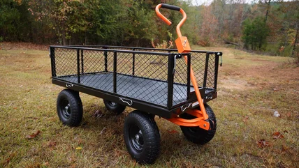With the ability to lug around 1,200 pounds, this cart can support more weight than some pickup trucks. Customers have reported carrying everything in it from stones and logs to multiple bags of soil and animal feed with ease. Its solid steel build and 13-inch pneumatic tires aid in that support capabilities, while also giving the cart a high level of durability against uneven terrain and natural elements. The cart can also be transformed in many ways for different traversing options, such as removing or placing down the walls to support wider items. It also has a handle that can removed to be attached to your tractor or ATV, and a removable bed liner. With such a wide range of functions, it's no wonder buyers have highly praised it, with a 4.6 rating average. You can currently get your hands on it for $169.99.
