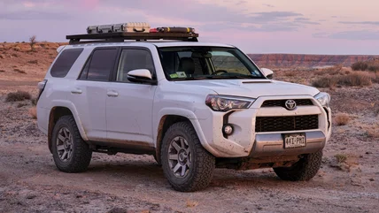 4Runners are consistently ranked among the longest-lasting SUVs out there, with many owners clocking over 250,000 miles in their 4Runners. With good ground clearance as well as short front and back ends, a 4Runner can handle rocks or steep hills without issue. Plus, skid plates on the bottom are like armor for any terrain. Recent models also have advanced suspension to soak up rough trails, keeping rides comfortable no matter the conditions.