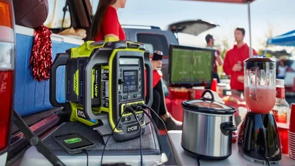 You can power everything from a laptop to a 32-inch TV off this inverter. However, be aware that the more power it sucks up, the less amount of time it will last. According to Ryobi, plugging a 200 watt garage fridge into this power station while using two 40V 6.0 Ah batteries will only give you three hours of runtime. So, it definitely could be used during your next power outage — though, you'll want to make sure you have plenty of charged batteries on hand.