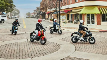 Now, moving on to the only other non-Honda motorcycle on our list: the Kawasaki Z125 Pro. This motorcycle is a street fighter built to compete with the growing popularity of the Honda Grom that manages to fit a whole lot of attitude into a very small package. Like the Papio, this bike is a little more performance minded than some of its peers. It has a 125cc, four-stroke, one-cylinder, SOHC, two-valve, air-cooled engine. "At 125cc, the SOHC four-stroke bike won't be railing down the freeway, but it has plenty of power for the streets," writes Ride Apart. "It redlines without hesitation just past 9.5k RPM, and seems to just want to go more whenever it hits that point, instead of screaming at me like my poor Ninja 250R." They also noted that it had few issues with battling inclines and was comfortable accelerating at low to mid-speeds.