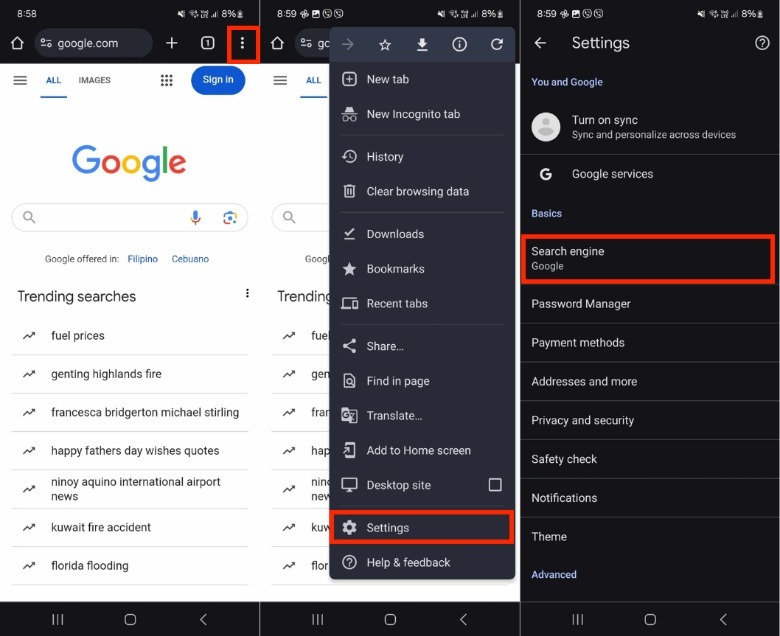 On the other hand, the steps for changing the default Chrome search engine on Android may vary depending on your device. However, it will usually be found in your Chrome app's settings. For example, this is how you do it for the Samsung Galaxy Z Flip 3.