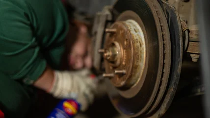 Although WD-40 has many automotive uses, like flushing water from wet distributor caps or other components, you should resist the urge to spray it on squeaky brakes. While WD-40 is useful for quieting noisy hinges on your car's doors and trunk lid, it is a powerful lubricant and brake pads require friction to stop your car safely. Noisy brake pads can be a sign that rust or moisture has collected between the pads and rotors, but you should take as a sign that it's time to have your brakes serviced.