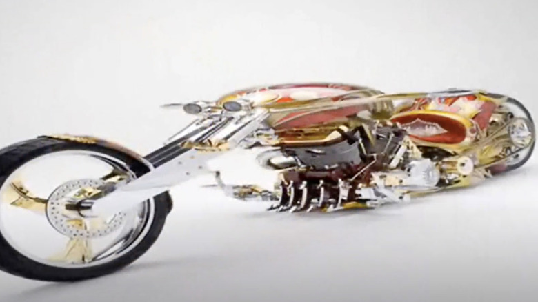 This bright and gaudy model is the result of an enormous labor of love from Sam Nehme, who started the project in 2007. He told Ultimate Motorcycling, "I've never been a 'skull-and-bones' builder. I wanted something inspired by the Alien theme, and the bike does have that same quality — sexy, and at the same time, a little scary." BMS Choppers' Nehme is known for creating some of the most unique and ostentatious custom bikes, and few could be considered as outlandish as Nehmesis: a Yamaha Road Star 1700 with a gleaming sense of style like no other.