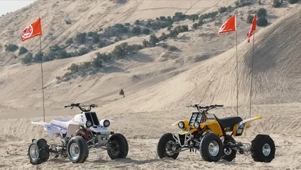 A four-stroke engine goes through four stages during combustion producing a power stroke, an exhaust stroke, an intake stroke, and finally a compression stroke. The two-stroke engine equipped Banshee features a much more condensed combustion cycle combining both the power and exhaust stroke and the intake and compression stroke together. Two-stroke engines were popular because they aren't as complex to repair, they offer a unique sound, and most importantly, they redline at a much higher RPM making them powerful. So why was there a push for manufacturers to adopt four stroke engines over two strokes in the early 2000s?