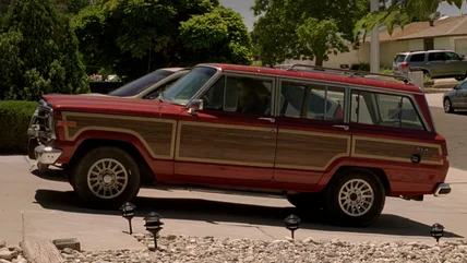 Skylar White drives a 1991 Jeep Grand Wagoneer for the entire series — a beautiful red example with pristine wood-grain paneling and trim covering most of the sides. Skylar's Jeep is from the last year of the original Grand Wagoneer. It was then put on the shelf until the 2022 model year.