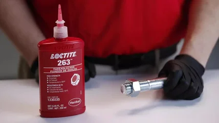 The various nuts and bolts that hold mechanical projects together are susceptible to spontaneous loosening, no matter how tightly you ratchet them down. This is because subtle vibrations from external or internal sources such as the rotational force of an engine ever-so-slightly nudges the screws up on their threads. To prevent this from happening, you can employ a sealing substance like Henkel's Loctite red threadlocker. This nifty goo can be drizzled into a screw's threading, sealing it in place with vibration-resistant cushioning.