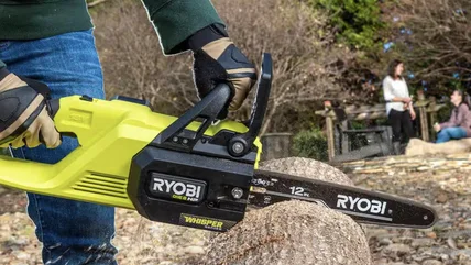 Unless you have a treeless yard, a chainsaw can be a good tool to have in your arsenal. When the leaves start falling, you can see where you need to trim your trees as well as cut for firewood. At the retail price of $199, the 18V ONE+ Whisper Series 12-inch Chainsaw is the largest bar and chain size within Ryobi's 18V ONE+ battery system. This size allows for up to a 10-inch maximum cut diameter.
