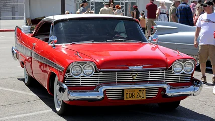 The most iconic movie car of all time might be Christine, the homicidal 1958 Plymouth Fury that starred in the 1983 horror film directed by John Carpenter. The film was an adaptation of Stephen King's novel of the same name, a book that ranked 95th on an American Library Association list of the most frequently banned works of the 1990s. The human headliners of the film include Keith Gordon as Arnie Cunningham and Harry Dean Stanton as state police detective Rudy Junkins, but the unquestioned star of the film is the red Fury that can repair herself when damaged.