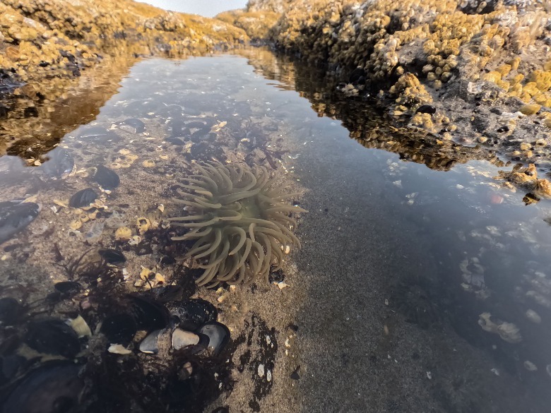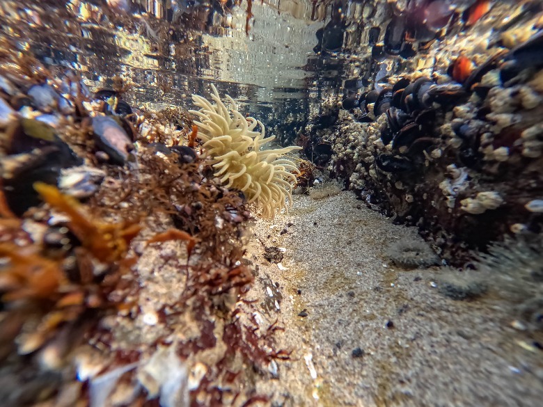 I put this lens to great use in a variety of scenarios, from recording peacock chicks eating corn from a ground level perspective, to filming a top-down angle shot of an SSD installation, to capturing anemones in a tide pool. GoPro does say that the macro lens mod is not designed for use underwater, but I captured some great results with it while snorkeling before I learned that this was the case.