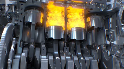The compression stroke comes next. The piston moves up, squeezing air and fuel into a tighter space and making combustion more powerful — like a controlled pipe bomb. A spark plug ignites the fuel at the top of this stroke. The power stroke is third, when expanding gases from exploding fuel shove the piston down the cylinder, turning the crankshaft and powering the wheels. The exhaust stroke is the fourth and last one in the cycle: the piston moves up to TDC, pushing burnt gases out of the cylinder. This is commonly how modern combustion engines work.