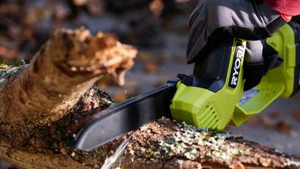 Ryobi claims that this model can cut up to three times faster than previous models thanks to its motor and advanced electronic systems. Able to easily cut through six-inch branches, it can deliver up to 65 cuts from a single charge despite its compact size. That small form also allows users to get the pruning chainsaw into difficult positions that wouldn't be possible with a larger device. A combination wrench stored inside the body of the chainsaw gives you the ability to quickly change the tension of the chain for the job at hand.
