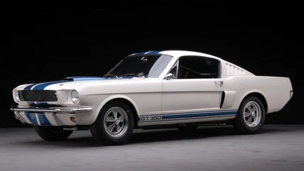 The 1965-66 Shelby GT350 is the Mustang that Ford took racing. Ford wanted to compete and win against the Chevy Corvettes in SCCA's B/Production class. They brought in Carroll Shelby, who had worked his magic on the Ford-powered Cobra. Ford shipped Mustang fastbacks, initially white, to Shelby's California facility, equipped with the high-performance 289 V8 and four-speed transmission, but without back seats (so that they would meet SCCA sports car regs) and hoods (replaced by a fiberglass version with functional scoop).