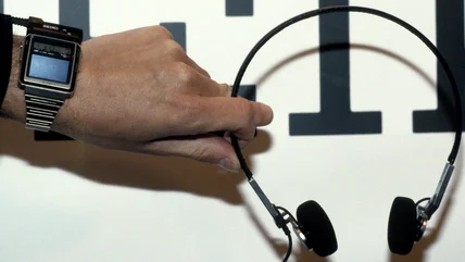 Speaking of portable TVs and keeping in the spirit of watch calculators, there was one device that took that portability to a new level — the Seiko TV watch. Yes, people were watching television on a watch roughly the size of an Apple Watch in the '80s. It released the same year as the Watchman – 1982 in Japan — and arrived in America circa 1984. An advertisement for the watch was even snuck into the James Bond movie "Octopussy."