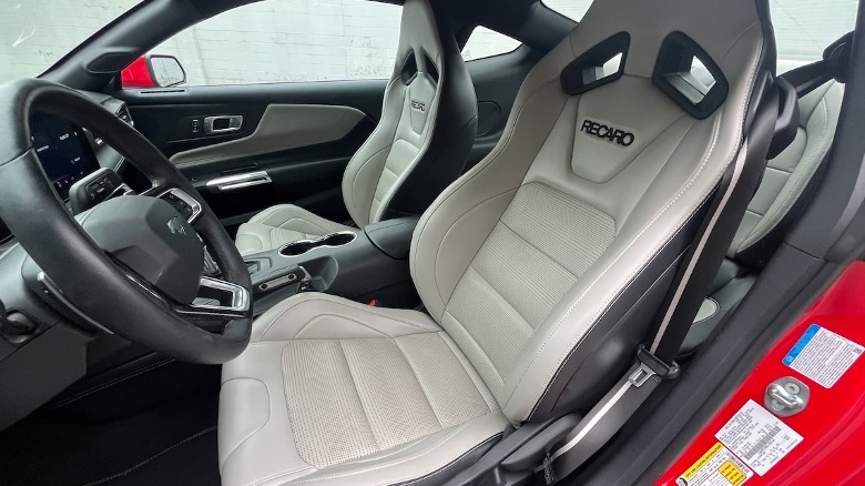 Next, the Mustang wasn't that comfortable. This car was equipped with optional Recaro seats that, while aggressively bolstered, were not forgiving on long trips. The additional MagneRide suspension smoothed things out a bit, but the seats still felt like I was sitting on my wallet the entire trip.