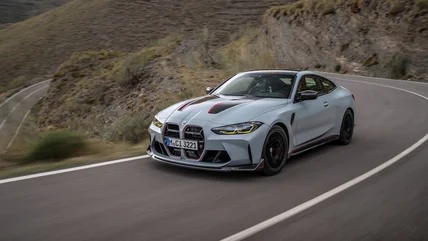 Thanks to these modifications, the car's weight comes in at 3,583 pounds. That lower weight is matched by a higher output of 543 hp (and 479 lb-ft of torque) supplied by a twin-turbocharged 3.0-liter S58 inline-6 engine that's now uprated to make 40 more horses than the standard M4 Competition. The CSL also sits 0.3 inches lower, with its wheels shod with Michelin Pilot Sport Cup 2R tires for further adherence. Elsewhere, the front splitter and larger integrated ducktail spoiler help with downforce, keeping the car glued to the road, and together, these features endow the 2023 BMW M4 CSL with an electronically limited top speed of 191 mph - making it the fastest BMW by top speed. Acceleration from zero to 62 mph takes 3.7 seconds, according to BMW. Only 1,000 M4 CSLs were made by the Bavarian giant, 250 of which reached the U.S.