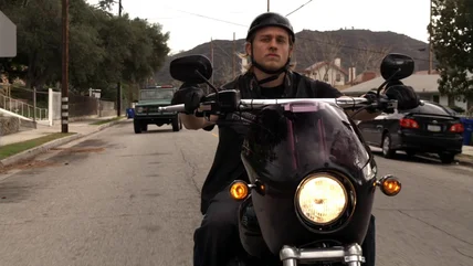 Hunnam's character, Jax Teller, is president of the titular motorcycle club, and when you're in a motorcycle club, fictional or otherwise, you're expected to ride a motorcycle or two. Even though he plays an outlaw, Jax understands the importance of a helmet while on his bike.