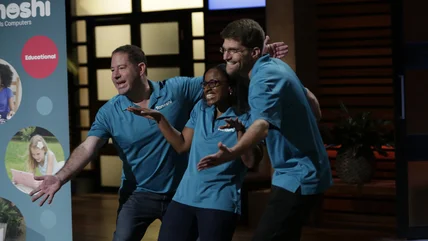 Greg Smith, Lisa Love, and Brad Johnston entered the tank seeking a $500,000 investment for an 8% equity stake in Tanoshi (Japanese for "fun"), their child-centric computer company. A two-in-one tablet/laptop that comes preloaded with "age-appropriate and educational content," it includes built-in parental controls, including the ability for parents to freeze the ability to use the computer from their own personal mobile devices.