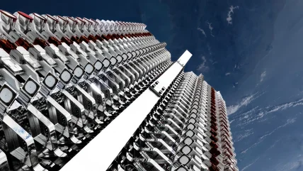 As interesting as Starlink satellites look when they are rocketing through the stratosphere, they're just as interesting to look at up close. "Each satellite features a compact, flat panel design that minimizes volume, allowing for a dense launch stack to take full advantage of SpaceX's Falcon 9 rocket's launch capabilities," the company states. This means that they are primarily rectangular in shape, though they can be oriented in two different configurations: They are folded flat in the "Open Book" configuration during ascent, and then the base of the satellite rotates outward, placing the satellite in the "Shark-Fin" orientation which it maintains during operation.