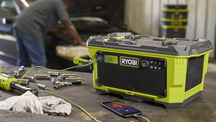 On the job site or the sports field, the Ryobi 18V One+ Hybrid Verse Link Bluetooth Stereo offers a convenient way to bring your music outside. It's compatible with other Ryobi Verse speakers, and so can be used as part of a synchronized system or on its own. Most owners should find it more than powerful enough on its own, since it offers 50W of bass and 15W of midrange.