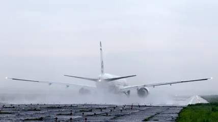 Rain not having much noticeable affect on jet engines most of the time doesn't mean water could never affect an engine. The runway can be more dangerous for jet engines than flying through rain. If there's a buildup of water on the runway in the path of an aircraft taking off or landing, planes are known to kick that water up, putting it right in the path of the engines' intake. If enough water gets into the core, it could extinguish the high-pressure flame being generated in the combustion chamber, causing a complete power loss.