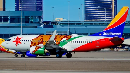 The special pattern features the American flag's 50 stars and 13 stripes, and is meant as a tribute to the nation and its heroes. The passenger jet made its first flight in 2021, a short hop of 239 miles, between Houston and Dallas in the airline's home state. The flight was crewed exclusively by Southwest employees who'd served in the U.S. military or reserves, and dispatched by a military veteran as a further nod to the company's commitment protect America's freedom.
