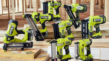 The 18V One+ Airstrike Narrow Crown Stapler is sold individually or as part of a kit that includes a 1.5Ah battery and a charger. It can fire up to 1,700 staples per charge, can sink 1 ½-inch staples into hardwood, and fits staples between ⅜-inch and 1 ½-inches in length. Meanwhile, the 18V One+ HP Brushless 18GA Narrow Crown Stapler, which is marked as 'coming soon,' promises up to 1,900 staples per charge, a 105-staple capacity, and the ability to shoot staples ⅜-inch to 1 ½-inches in length.