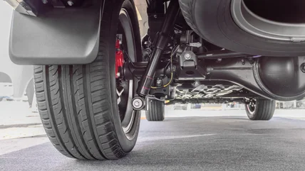The defining factor of a solid axle is that it has just one large housing. As such, its robust design often finds use in SUVs and trucks. Suspension is just as straightforward — the main downside being that when a tire goes up on one side, this necessarily affects the tire on the other because both wheels share one single axle housing.