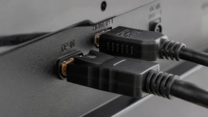 HDMI connectors and ports can be identified by their squished trapezoid shape. HDMI 2.1 is the latest version of the interface, and it can carry video and audio signals at up to 48 gigabits per second (Gbps). As we'll cover in the next section, that pales next to DisplayPort bandwidth, but that shouldn't matter for most applications. A 4K video signal at 60 frames per second, which is the highest quality you'll usually find for movies and TV, uses about 12 Gbps of bandwidth. So, although DisplayPort has superior capacity, most consumer electronics like televisions, projectors, and game consoles opt for HDMI. However, HDMI 1.4 and below are not suited to 4K video. The interface also supports HDR video from version 2.0 and up for better dynamic range and contrast. Where HDMI outshines DisplayPort is with eARC, which allows users to pass audio formats from the signal source to a soundbar instead of needing a coaxial cable.