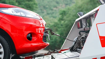 The safest way to tow an AWD car is with a flatbed tow truck. A flatbed tow truck will keep all of its wheels off the ground, preventing potential damage to the drivetrain and other components. It also helps protect your tires and suspension by keeping them off the road while the car is being moved. If you call roadside assistance and find out there are no flatbed trucks available, another option is to use a tow truck with dollies. Dollies are small platforms with wheels that go under your car's tires. When used, the tow truck lifts one end of your car, and the dollies support the other, so none of the wheels are touching the road, protecting your drivetrain from damage.