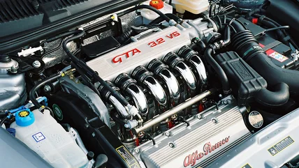 The first Busso V6 units ranged from 2.0 liters to 3.0 liters in capacity and two valves per cylinder. Still, it's the 24-valve units, introduced in 1992, that brought power and efficiency to another level. The latest 3.2-liter unit made 240 hp and 221 lb-ft of torque, giving the stunning 147 GTA hot hatch some serious oomph.