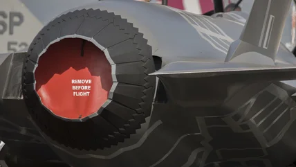 The F-35B is also equipped with Rolls-Royce's LiftSystem, which produces 20,000 pounds of thrust downward. Designed as a two-stage counter-rotating system, the 50-inch LiftFan is located behind the F-35's cockpit and hidden by a control surface — or flap. A driveshaft connects it to the main engine and, combined with the swivel nozzle and Roll Posts, provides the forward and vertical lift that allows the F-35B to take off vertically, hover, and land vertically.