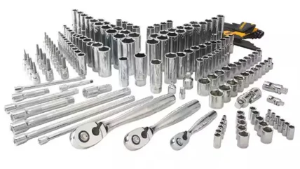 Besides Husky, various brands build solid starter ratchet and socket sets. You can grab a Craftsman 159-Piece Mechanics Tool Set for $149. Craftsman is a well-known manufacturer and popular name at this price range. The kit includes a varied selection of deep and shallow sockets in ¼-inch, ⅜-inch, and ½-inch drive metric and SAE sizes, along with three ratchets. It also features a set of wrenches and a ¼-inch-drive tool with bits. Another solid option could be the Kobalt 297-Piece Mechanics Tool Set for $149. With roughly 100 more tools than the DeWalt model, it could be a great bargain. However, some customers do note that the plastic case is of poor quality.