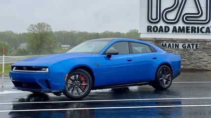 On successive days around Road America in Elkhart Lake, Wisc., the Charger Daytona Scat Pack blew my mind. As an EV. Even though the famed track was open for the Midwest Automotive Media Association's 2025 Spring Rally on May 21, Dodge didn't want to debut its latest vehicle on a surface inundated by rain and novices. Still, testing out the PowerShot—a steering wheel button opposite the drive mode toggle that unlocks 40 hp extra for 10 seconds to get to that 670-hp mark—took my breath away so expeditiously that the gimmick could've been dubbed GutShot. Same with Launch Control.
