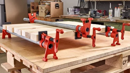 While speed clamps and quick-release bar clamps are ready for use straight from the package, pipe clamps, often considered the best clamps for woodworking, require an additional piece. When you buy a pipe clamp, such as the Bessey ¾-inch H Style Pipe Clamp (list price $15.99 on Amazon), you'll also need a length of ¾-inch diameter pipe (although different size pipe clamps require appropriately sized pipe).
