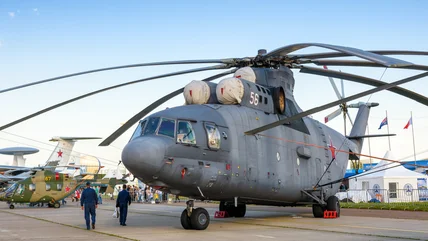 Originally designed and built by the Moscow Mil Helicopter Plant, over 300 units of the Mil Mi-26 have been built, and its production continues today. Its most modern iteration, the Mil Mi-26T2V, being developed for the Russian military, features several improvements, including a multifunctional instrument display, improved avionics, night flying capability, and a better communications system. Despite being nearly half a century old, the Mil Mi-26's unique characteristics have kept it relevant, and it remains the biggest and most powerful heavy transport helicopter in the world.