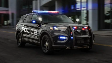 Police cars can be called upon to perform pursuit duties or engage in high-speed chases. These police cars will usually have high-output engines, either a V8 or a turbocharged six. Ford's current Police Interceptor Utility, based on the Explorer, offers a 3.0-liter, 400-horsepower EcoBoost V6 mated to a 10-speed automatic transmission and all-wheel drive. The Chevrolet Tahoe Police Pursuit Vehicle, or PPV, comes with a 5.3-liter V8 producing 355 horsepower, sent through a 10-speed automatic and either rear-wheel or four-wheel drive. Some electric vehicles are also getting police treatments, with the Chevy Blazer EV and the Mustang Mach-E becoming available for police forces, but they're still not the fastest police cars on the road.