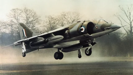 The Harrier is one of the most unique fighter jets in history due to its remarkable ability to take off and land with little need for a runway. Named after the bird of prey of the same name, the first-ever Harrier was designed by Hawker Siddeley Aviation in the U.K. The design goes back to the P.1127 prototype in the late 1950s and was originally used in the Royal Air Force (RAF), then later adapted as the AV‑8A for the United States Marine Corps (USMC).