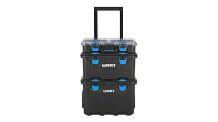 Each of the modular tool storage systems covered here are designed to be portable and come with similar features in that regard. However, there are some slight differences between the five units. Walmart's Hart Stack System features two 7-inch wheels and a metal telescoping handle for mobility. Additionally, each box comes with side carrying handles and lockable latches, but Walmart does not go into detail about the materials used to build the product.
