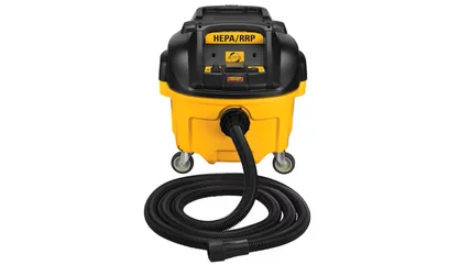 Several, but not all, of DeWalt's dust extractors also come with HEPA filters, including the 10-gallon wet-dry model. There's also an 8-gallon version of that model, and a regular 10-gallon version not rated for wet work. If you're working with a 1-1/8 inch DeWalt SDS rotary hammer, you can also get an onboard HEPA-rated dust extractor that attaches to the tool itself.