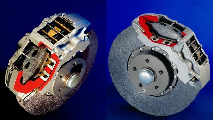 Manufactured at Mercedes' plant in Esslingen-Mettingen, the specialists combined a fine blend of carbon powder, carbon-fiber, and resin under high pressure. The compound was baked at 1,800 degrees Fahrenheit before treating the entire thing with liquid silicon, which turns the carbon matrix material into ceramic. The result are state-of-the-art ceramic brake disks that weight 60-percent less and are more heat-resistant than conventional steel discs.