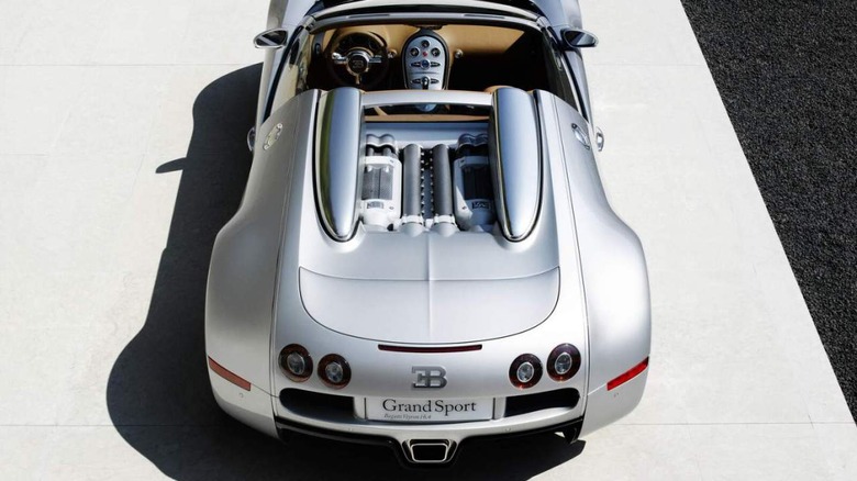 But we're not talking about a standard production Veyron 16.4 Grand Sport. The car you see here with its gleaming white silver metallic paint and Cognac leather interior is actually the first-ever Veyron 16.4 Grand Sport prototype. First making its debut in 2008 at Pebble Beach, this Veyron Grand Sport 2.1 is an unregistered demo car.
