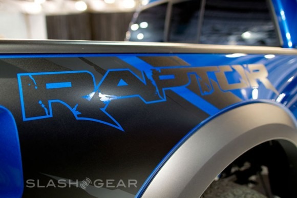 On the outside of the new Raptor truck key styling changes for the 2012 refresh inside a new side graphic that says Raptor. When I drove the 2011 Ford Raptor with the graphics designed to resemble digital dirt on the side the thing most people asked was if you could get the truck minus the graphics. I think the new graphics are much more attractive than the old version and buyers will like them on the truck much more.