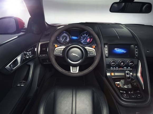 You'll forgive us, though, if we spend a little time drooling over the looks (and the noise in the video above) however, with the F-TYPE weaving together details from Jaguar's past – the profile is reminiscent of older XK models, for instance – with a new, taut design language that sees the spoiler and door handles left flush with the bodywork until needed. Bi-xenon headlights get integrated LED daytime running lights, along with full LED lighting at the rear. The S and V8S versions get an "active exhaust system" which opens special valves over 3,000rpm to increase the aural cacophony.