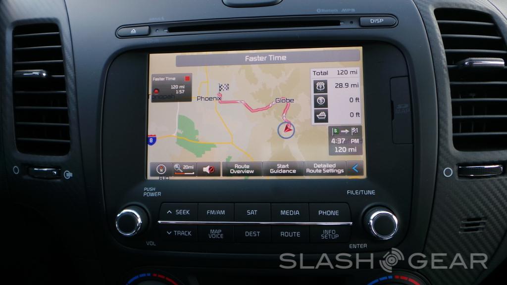 The UVO system uses an extremely simple user interface. Some are too confusing and try to be too fancy, that wasn't the case here. With dedicated Media, Maps, Navigation and other hard buttons below the display for ease of use it allowed the actual screen to be simple and clutter free. Navigation was a breeze and as we mentioned earlier this year, KIA has partnered with Google Maps. You can send the map from your PC or smartphone right to the car with ease before a trip. Making the "get in and go" term even more useful for roadtrips. Pair that Galaxy S III to the car and you'll be enjoying tunes on the 7-inch display, while following navigation on the optional 4.2-inch TFT meter cluster display we mentioned above.