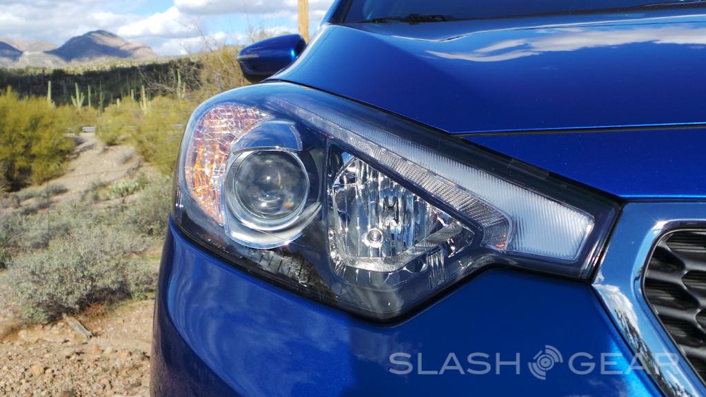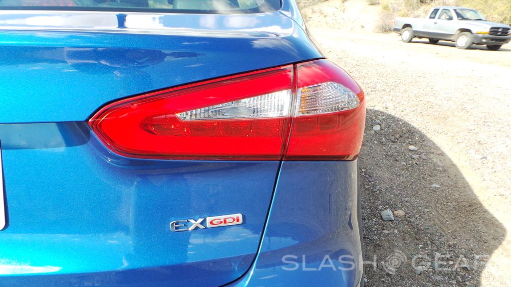 The previous generation was criticized for its sluggish performance, but with the 2014 Forte EX you certainly won't have that issue. While the speedo went up to 170 (which means nothing), sadly we weren't able to test those limits. Again we want to mention luxury, because KIA wants to offer a near-luxury experience with this ride. The in-car noise from the road was rather quiet even at high RPMs and flying through the desert, and we were quite pleased with overall cabin noise. Something you'd expect from a luxury vehicle is nicely present with the Forte.